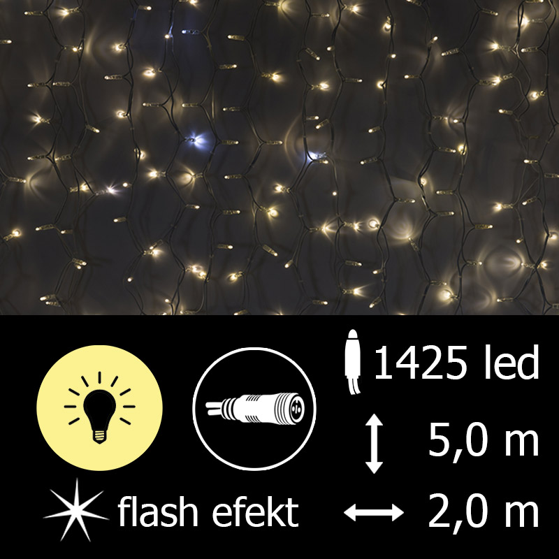 FLASH EFEKT, venkovní, 500x200 cm (VxD), 1425 LED, příkon 101 W, barva diod teplá bílá+bílá, bílý kabel, 220-240 V