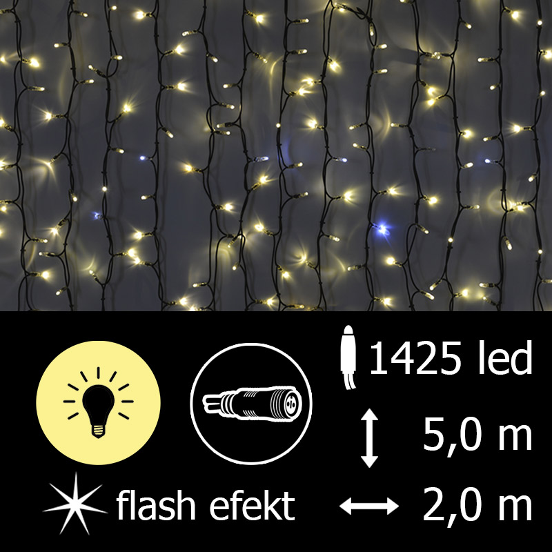 FLASH EFEKT, venkovní, 500x200 cm (VxD), 1425 LED, příkon 101 W, barva diod teplá bílá+bílá, černý kabel, 220-240 V
