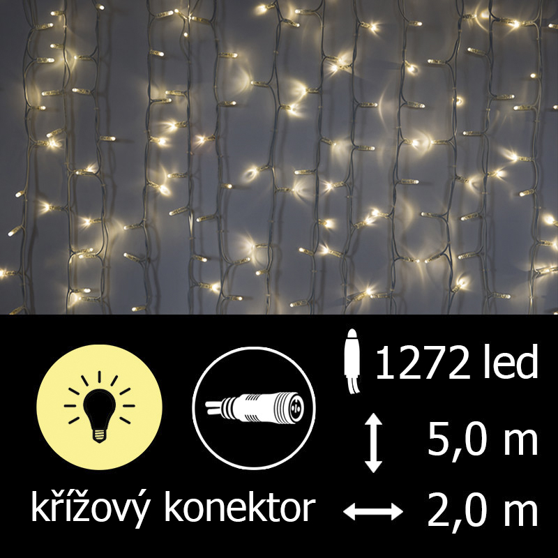 Světelný závěs LEDPL-5325 teplá bílá/bk 5m, 1272 LED křížový konektor AKCE výprodej