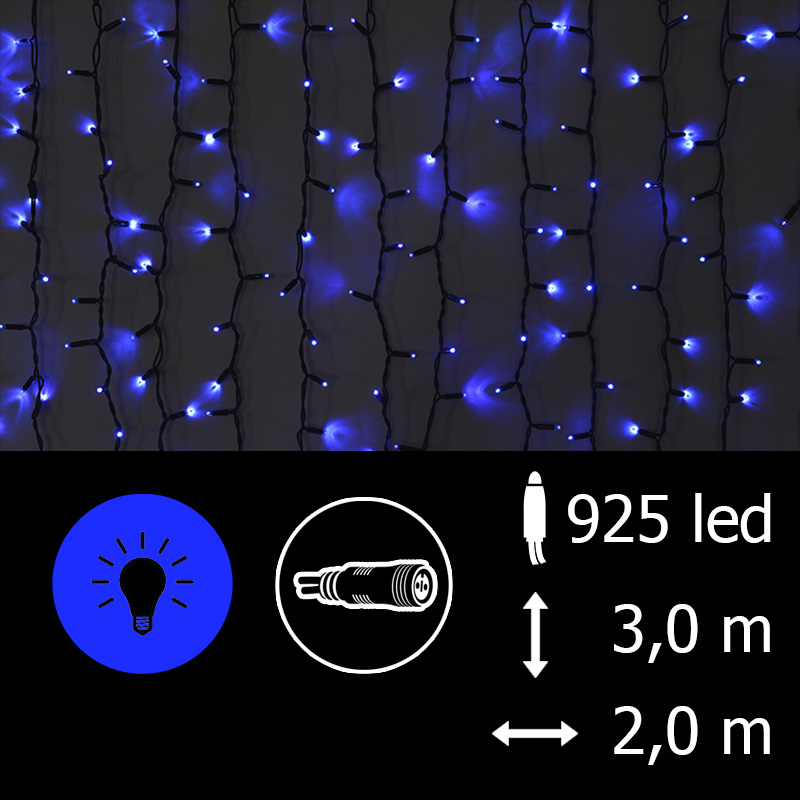 Venkovní, 300x200 cm (VxD), 925 LED, příkon 115 W, barva diod modrá, černý kabel, 220-240 V