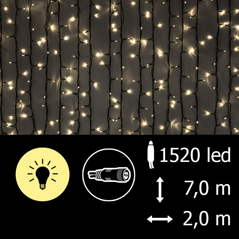 Světelný závěs LEDPLR-7620 teplá bílá/čk 7m, 1520 LED křížový konektorSkladem15 959 Kč/ ks13 189 Kč bez DPH