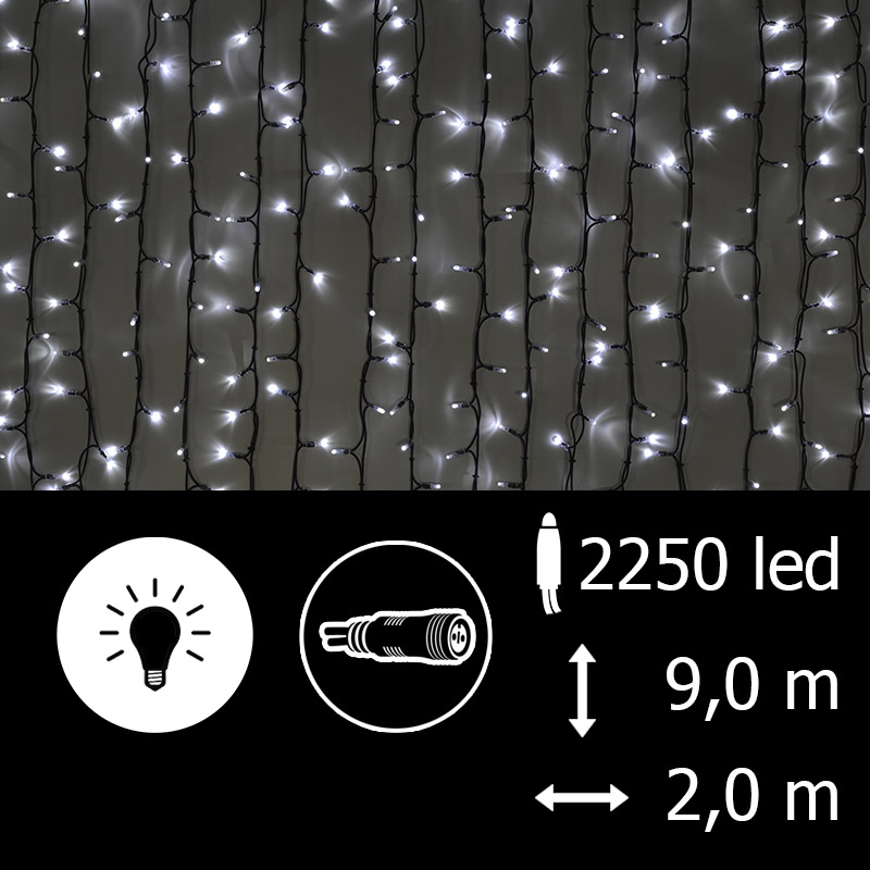 Venkovní, 900x200 cm (VxD), 2250 LED, příkon 230 W, barva diod bílá, černý kabel, 220-240 V