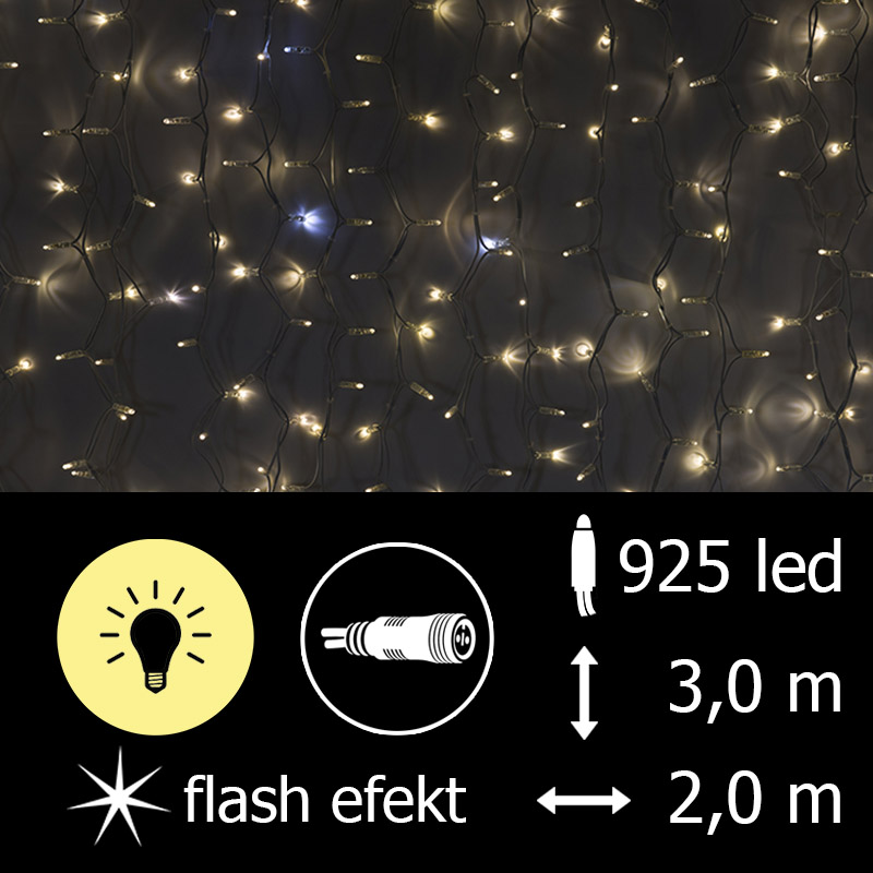 FLASH EFEKT, venkovní, 300x200 cm (VxD), 925 LED, příkon 115 W, barva diod teplá bílá+bílá, bílý kabel, 220-240 V