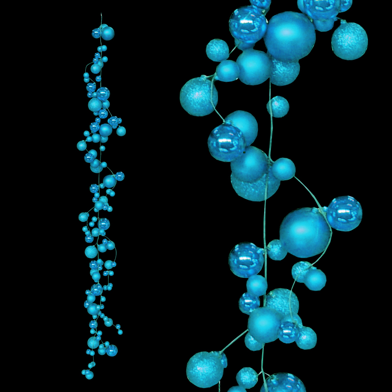 délka 150 cm, koule průměr 3 cm (72 ks), 5 cm (36 ks), 7 cm (12 ks), barva koulí tyrkysová