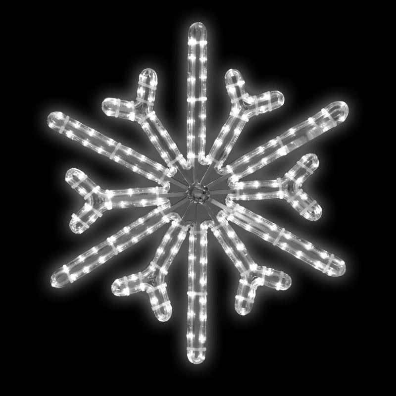 Vločka LED dekorace pro vnitřní i venkovní použití LED kabel příkon 18 W výška 51 cm x šířka 49 cm váha 1,6 kg duralová konstrukce osazena LED světelným kabelem, kombinace s LED světelným řetězem Možnosti umístění dekoru: ozdoba sloupu veřejného osvětlení - rozteč 50 cm - potřeba 2 úchytů rovnobě... celý popis