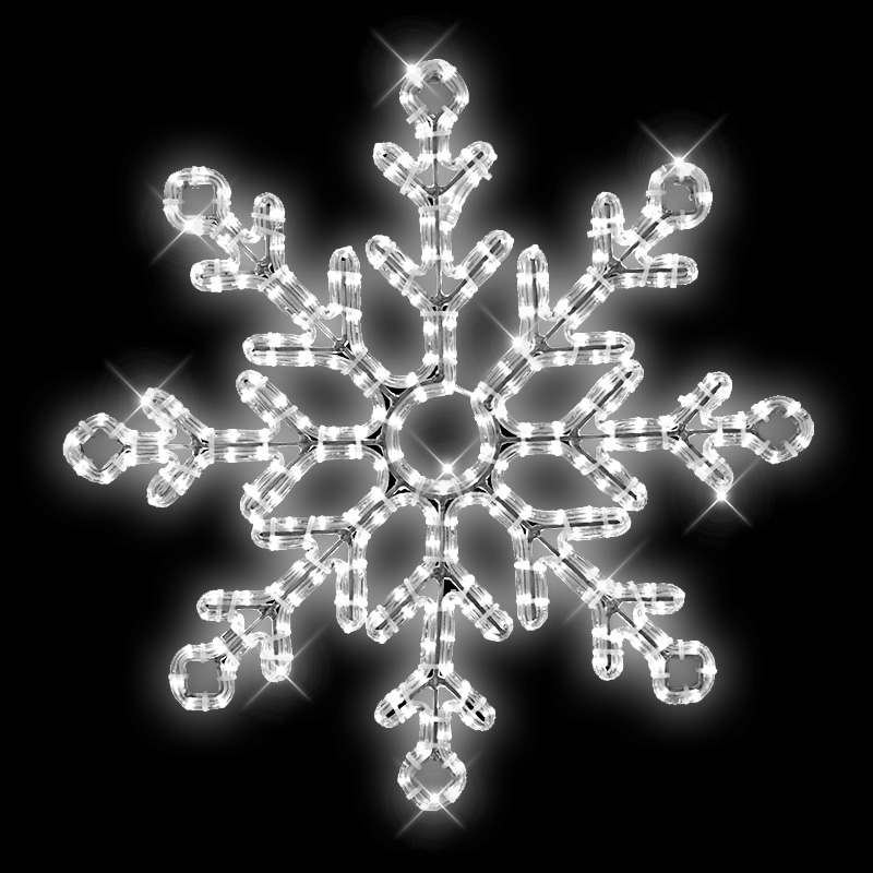 Vločka malá LED dekorace 8693 pro vnitřní i venkovní použití kombinace LED kabelu a LED řetězu příkon 28 W výška 72 cm x šířka 68 cm (64 x 64 cm bez úchytu) váha 2,8 kg duralová konstrukce osazena LED světelným kabelem, kombinace s LED světelným řetězem Možnosti umístění dekoru: ozdoba sloupu veř... celý popis
