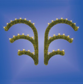Světelné žárovkové dekory jsou tradiční a osvědčenou dekorací. Duralová konstrukce je osazena žárovkovým kabelem MKOS a obalena PVC jehličím z naší výroby. Na přání můžeme dodat s jinou barvou jehličí. Lze osadit klasickými i LED žárovkami různých barev se závitem E27.