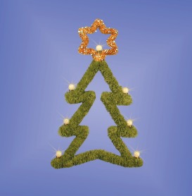 Světelné žárovkové dekory jsou tradiční a osvědčenou dekorací. Duralová konstrukce je osazena žárovkovým kabelem MKOS a obalena PVC jehličím z naší výroby. Na přání můžeme dodat s jinou barvou jehličí. Lze osadit klasickými i LED žárovkami různých barev se závitem E27.