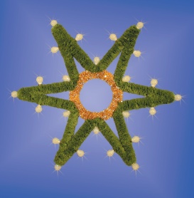 Světelné žárovkové dekory jsou tradiční a osvědčenou dekorací. Duralová konstrukce je osazena žárovkovým kabelem MKOS a obalena PVC jehličím z naší výroby. Na přání můžeme dodat s jinou barvou jehličí. Lze osadit klasickými i LED žárovkami různých barev se závitem E27.