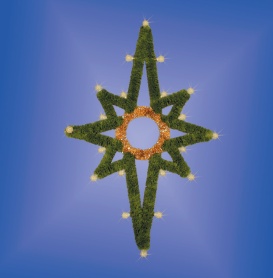 Světelné žárovkové dekory jsou tradiční a osvědčenou dekorací. Duralová konstrukce je osazena žárovkovým kabelem MKOS a obalena PVC jehličím z naší výroby. Na přání můžeme dodat s jinou barvou jehličí. Lze osadit klasickými i LED žárovkami různých barev se závitem E27.