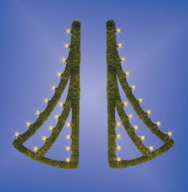 Světelné žárovkové dekory jsou tradiční a osvědčenou dekorací. Duralová konstrukce je osazena žárovkovým kabelem MKOS a obalena PVC jehličím z naší výroby. Na přání můžeme dodat s jinou barvou jehličí. Lze osadit klasickými i LED žárovkami různých barev se závitem E27.