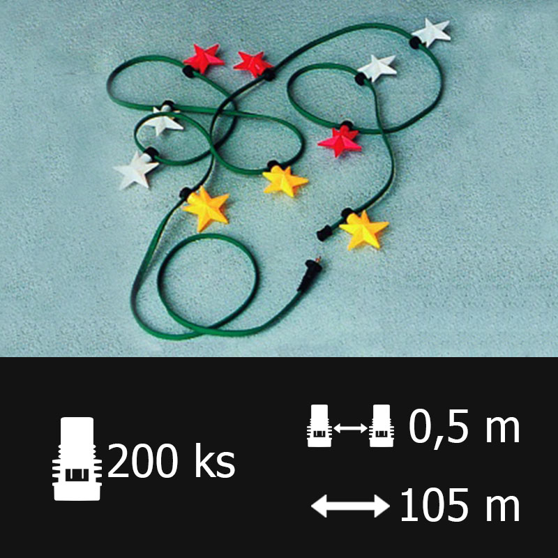 délka 105 m, rozteč 0,5 m, 200 obj., typ žárovek 15W, kabel 2x1,5mm (bez žárovek)