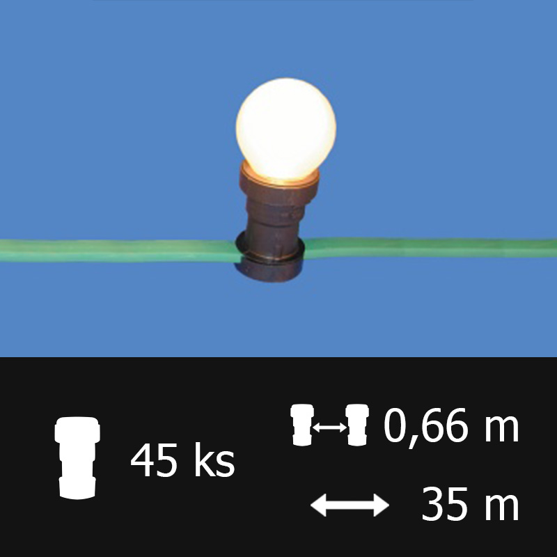 délka 35 m, 45 objímek, rozteč 0,66 m, 220-240 V (bez žárovek), krytí IP44